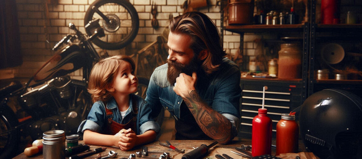 In a small garage nestled among the hills, the scent of freshly cut wood mingled with the faint aroma of motor oil, lingered in the air. Joe, a rugged biker with calloused hands, sat at his workbench. His leather jacket hanging on a nail nearby, bore the marks of countless rides, and his eyes held stories of open roads and distant horizons.
